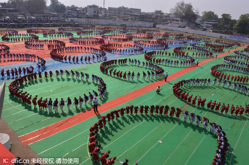 当地时间2016年4月11日,印度曼德拉地区,3千名学生集体跳Karma(印度一种著名的部落舞蹈),试图去创造一个吉尼斯世界纪录。