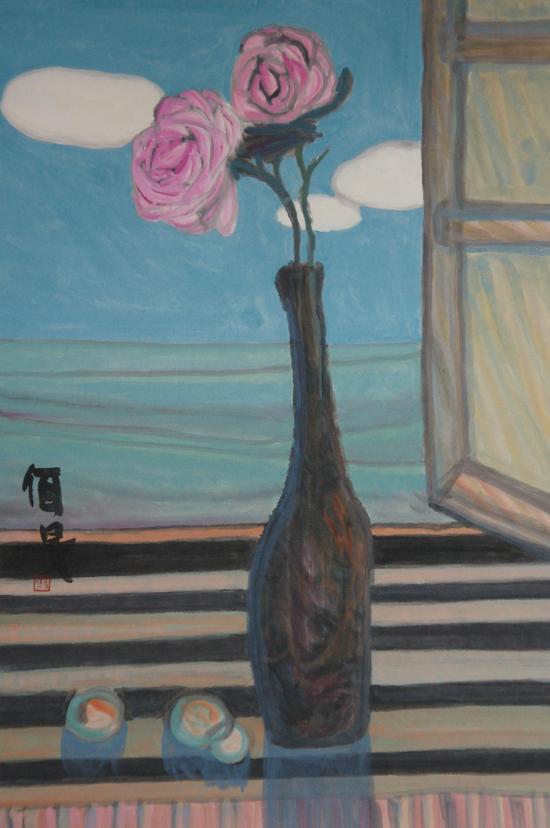 杨佴旻的探索之路始于上个世纪90年代初,创作于1992年的《白菊花》是他早期新体绘画的代表作。在宣纸上兼用没骨渲染和勾勒,创造出由一片灰色笼罩的画面,衬映出白菊精干的枝叶?;婧托场⒍?。这一成功的作品使他受到莫大的鼓舞,坚定了他在宣纸上继续探索的决心。近二十年来,他沉浸在探索的无穷乐趣之中,创造了大量笔墨与色彩相结合、兼有艳丽与古雅之美的写意国画,成为这一领域内出类拔萃的艺术家。