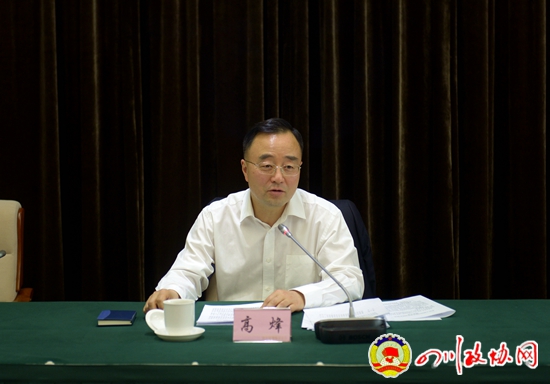4月12日,省政协召开重点视察调研活动情况通报会,听取省直有关部门对“长江流域四川段生态环境?;ぁ鼻榭龅慕樯?。省政协副主席高烽出席会议并讲话。