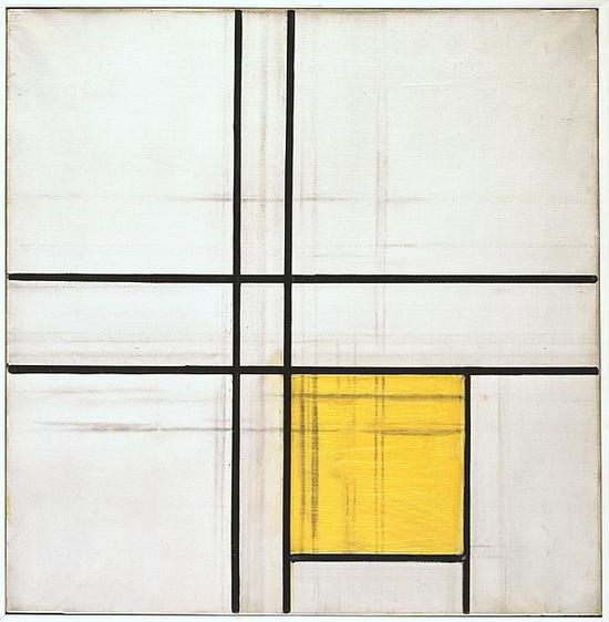 这个作品是"EXCEL小王子"蒙德里安作品《双线和黄色的组合》,画于1934年,说好的三原色呢?