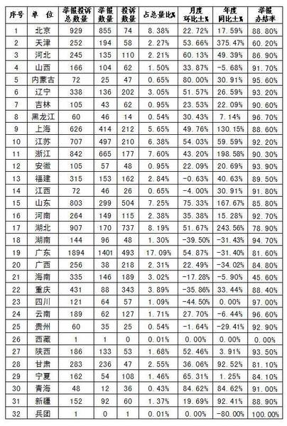 附表1:价格举报投诉分地区统计表