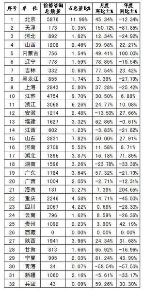 附表3:价格咨询分地区统计表