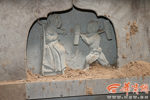 陕西现宋元平民墓:室顶镶铜镜 墙上刻"二十四孝"