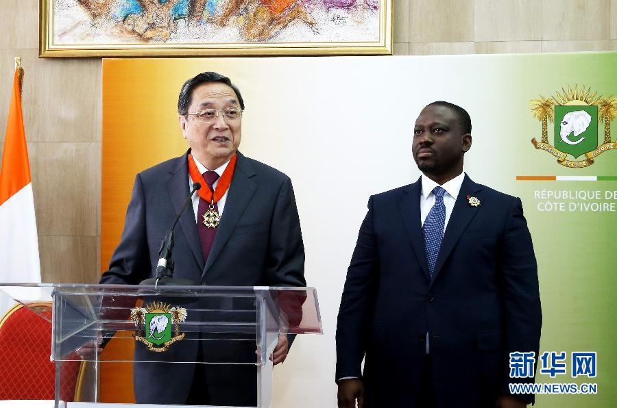 为表彰俞正声在推动科中关系方面所作重要贡献,索罗议长向俞正声授予“科特迪瓦国家司令官荣誉勋位”。