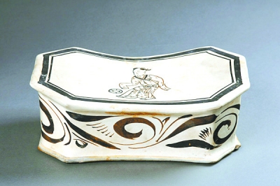 蹴鞠图瓷枕