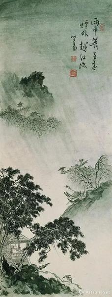 除山水画之外,界画、人物、花鸟、鞍马亦有成就,多是追踪古法,主要继承宋人画法,并在此基础上参以他法,从而产生自己面貌,这样的态度是追求一种古典的认可,而非刻意求复古。见他画作常有相近的面貌,或以为才思未见宏大,此刻只要循着作品的开启与阅读,在山水图像间不难发现,画中所营造的气度不是宽阔而广袤的江山,而是接近文人隐逸的理想山水;要去建构的不是壮阔的视野,而是予人安定的家园。见他画作常有几近相同之貌,或以为是真赝双陈,此刻只要悉心品味,便可发现出现在不同的画中,不是后人所为的赝品造假,而是他用相同的粉本,展露再现的技巧,因为用笔精炼,设色稳定,使之乍观下犹如一体,其实所不同之差异处,都在精微变化。