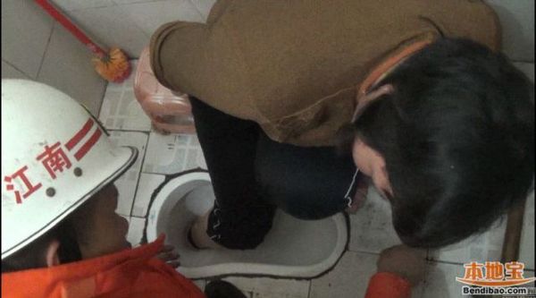女子脚卡卫生间情况严重 消防员机智解救