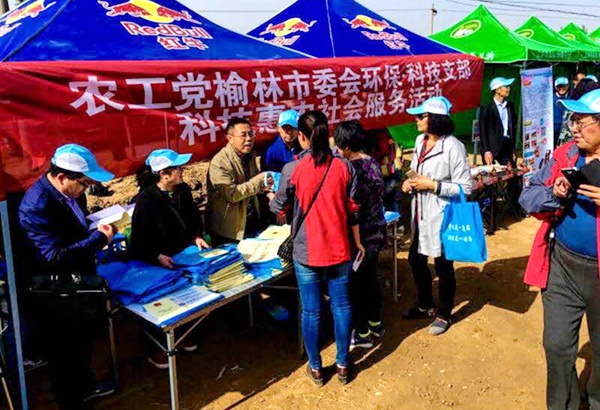 2016年4月9日,在榆林市榆阳区第六届杏花文化节启动之际,农工党榆林市委会环保支部和科技支部共同赴榆阳区古塔镇开展农村环??萍贾缎疃?。