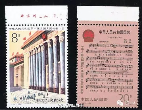 点评:J94《六届人大》。其中2-1的厂铭票较常见,清晰度30%到80%不等;而国歌2-2厂铭几乎不可见。其存世量估计比刘胡兰还少,但是因为其不在74-82范围之内,而且邮票题材不如《石林》和《宫灯》好,所以有人会把它排到“厂铭十珍”榜第四位。