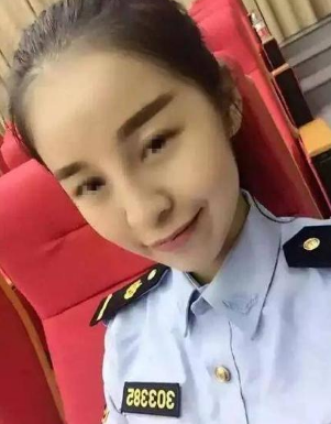 从照片上看,当事女青年面容姣好,身着淡蓝色制服,胸前有编号。因此,不少网友误以为她穿的是“警服”。