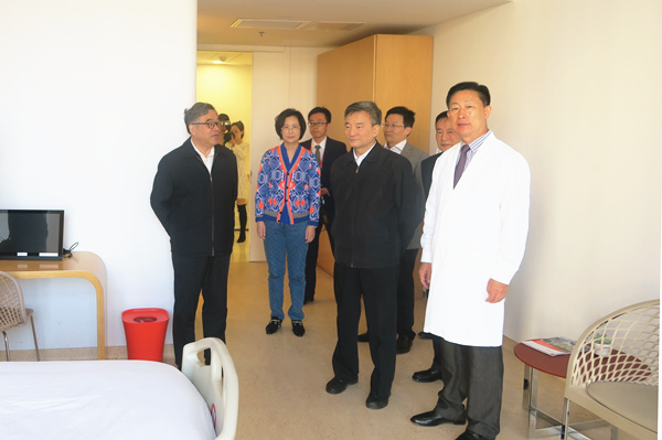 4月18日,全国政协副主席、民进中央常务副主席罗富和在北京会见了中国工程院院士韩德民。图为罗富和在韩德民(右一)的陪同下实地考察优联耳鼻喉医院。