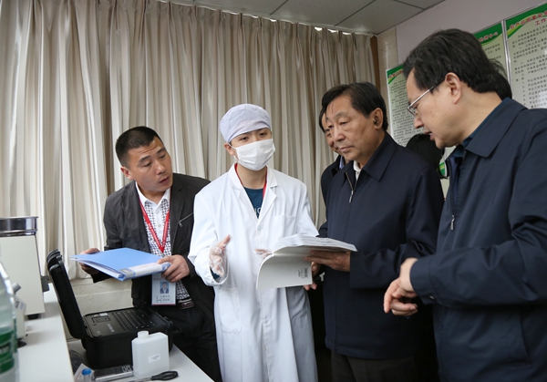 齐续春(右二)了解菜市场农产品质量检测情况
