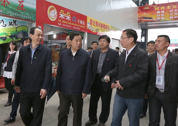 齐续春(左二)、夏涛(左一)在合肥三阳泰中菜市调研