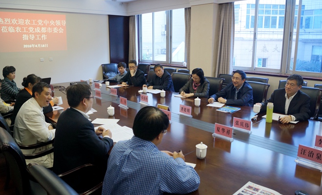 2016年4月18日,农工党中央副主席、中央监督委员会副主任龚建明一行,在农工党四川省委会副主委夏华祥等同志的陪同下,来到农工党成都市委会机关开展调研并召开了座谈会。农工党四川省委会副主委、省监督委员会主任、成都市委会主委侯一平代表农工党成都市委会作工作汇报。