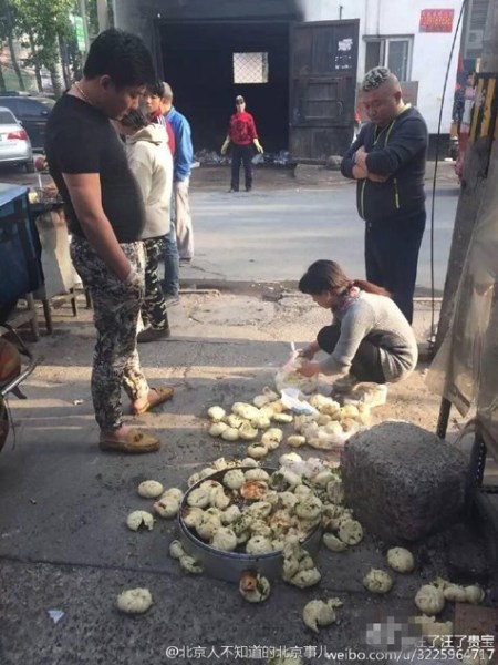 北京南三环:小贩拿错包子馅 金链男怒踩一屉包子