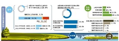 受国务院委托,昨天上午,陈吉宁向全国人大常委会作《国务院关于2015年度环境状况和环境保护目标完成情况的报告》,通过一系列数据,他介绍了当前我国空气质量、水环境质量、土壤环境的整体情况,“当前,我国环境?;ば问埔廊谎暇试椿肪吵性啬芰σ丫锏交蚪咏舷?,生态环境特别是大气、水、土壤污染严重,已成为全面建成小康社会的突出短板”。
