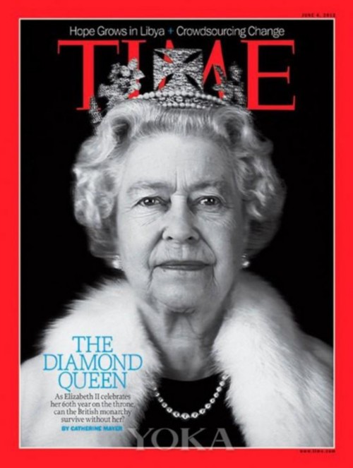 登基60周年之时,英女王登上《时代周刊》封面,被称为“The Diamond Queen(钻石女王)”。 登基60周年之时,英女王登上《时代周刊》封面,被称为“The Diamond Queen(钻石女王)”。