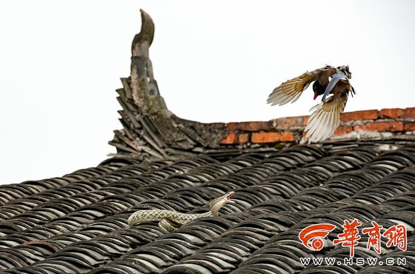 关键词:农家屋顶 蛇与鸟 生死大战