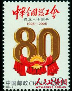 2005年发行的“2005-8中华全国总工会成立八十周年纪念邮票”