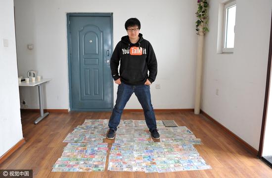2016年04月26日,辽宁省沈阳市,80后男子小岳耗时五年,坚持不懈地收藏各国钱币,目前已经收藏160余国钱币。在已经入手的钱币中既包括已经 退出市场的纸币、发行数量有限的纪念币、塑料币,也包括很多目前正在流通的货币。但由于一些发行量较小和市场价值昂贵的纸币难以入手,所以一直没能达成收集全部国家钱币的愿望。