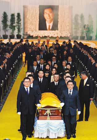 2007年,陈启礼去世,世纪葬礼轰动整个台湾,黑白两道万人送行。作为长子的陈楚河当然也在送别队伍中,太子爷身穿黑色孝服送爸爸最后一程,相当抢镜。