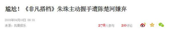 而回头看看陈楚河对搭档的评价:有朱珠这样的队友,不怕神一样的对手。慢着,这句好熟,原句是不是不怕神一样的对手,就怕猪一样的队友。