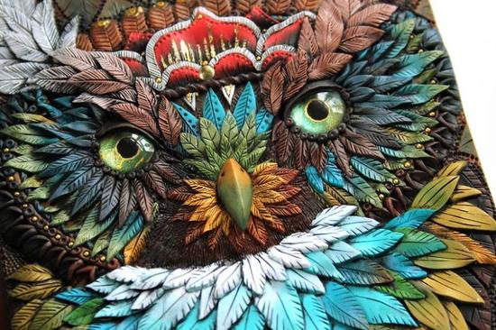 艺术家Aniko Kolesnikova,又名Mandarin Duck来自拉脱维亚,目前定居伦敦。Aniko擅长利用各种手工技艺以及各种材料制作栩栩如生的立体图书封面。内容大多是各种童话故事中的动物形象,有龙、猫头鹰、狐狸等等,样子十分逼真。让一本普通的书仿佛具有了魔法,瞬间身价倍增。