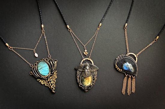 出了这些精美魔幻的图书封面,Aniko还会制作一些同样魔力四射的首饰,装饰摆件等,都非常受欢迎。客户还可以定制自己喜欢的主题,每个A6大小的封面大约150欧元起。