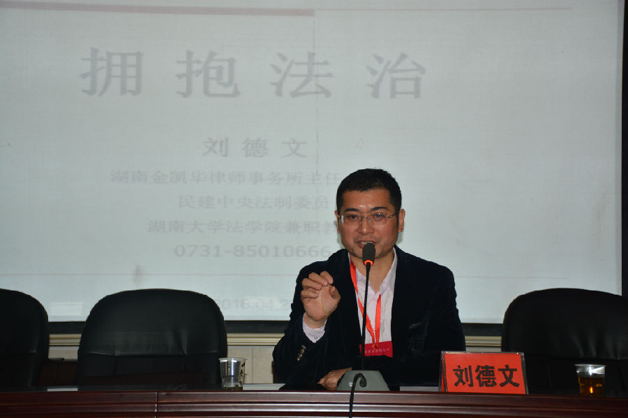 金凯华律师事务所主任刘德文为星城监狱服刑人员开展了主题为《拥抱法治》的法律讲座。他指出我国法治基本现状是尊重和保障人权前所未有;财产权的保障有待加强;恪守诚信,破解执行难的格局已经初步形成;依法行政,普遍建立法律顾问制度;法律职业共同体雏形初显;互联网金融亟需规范。当前依法治国已经成为执政党重要的治国方略,他呼吁服刑人员遵纪守法,绝不再碰触法律底线,拥抱法治新常态下的美好明天。