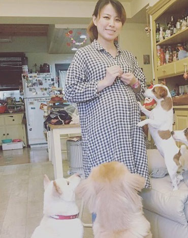 弯弯孕肚明显。