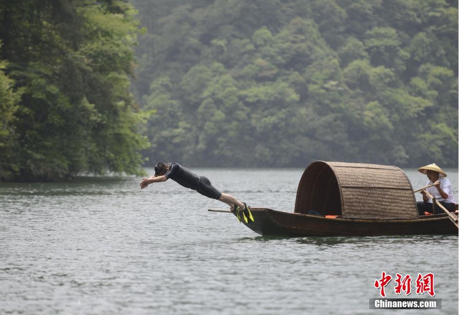 关键词:张家界 清洁工 潜水 捡湖底垃圾