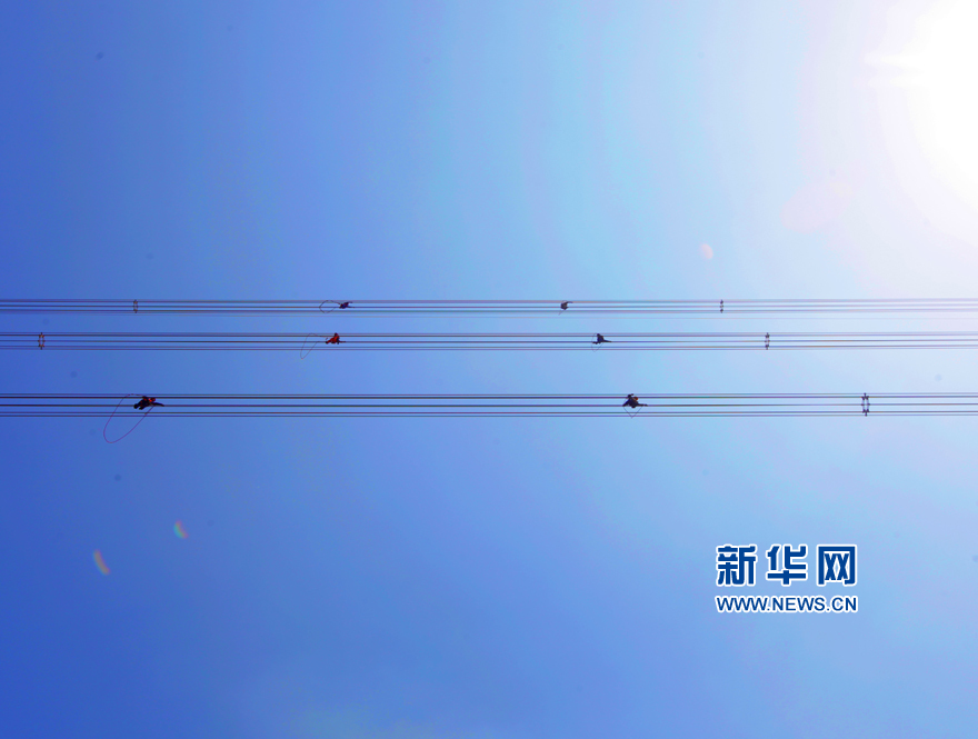 检修技术人员对铁塔程进行勘察。 缪俊逸 江昆 摄 图片来源:新华网