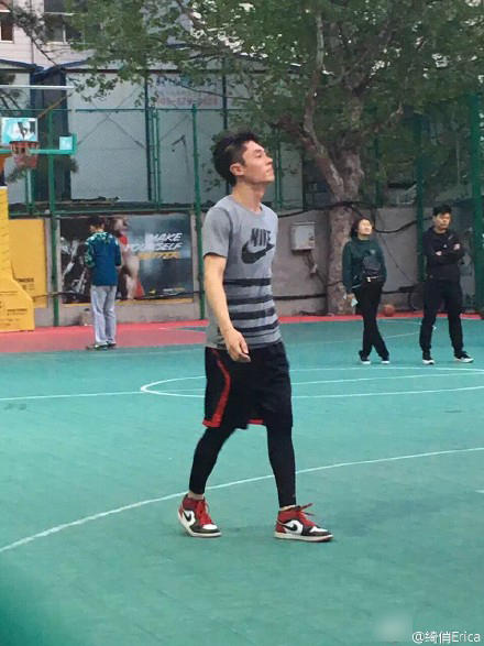 腾讯娱乐讯 近日,有网友在山东青岛偶遇在篮球场上打球的霍建华。