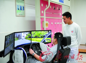 一位工伤康复者在学习驾驶技术。(资料图片) 广州日报记者乔军伟摄