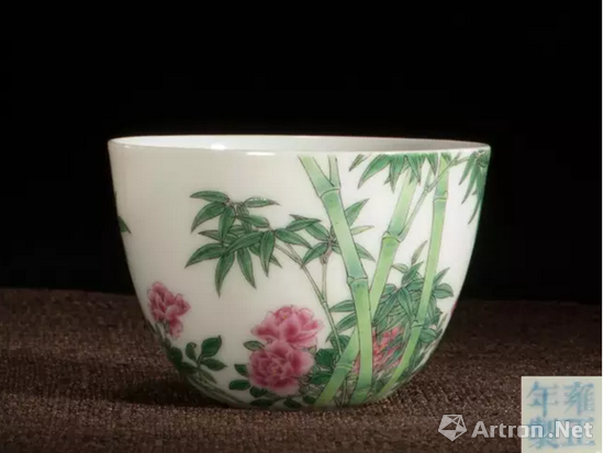 清雍正 珐琅彩月季绿竹诗意小杯 D6.25cm H4.45cm