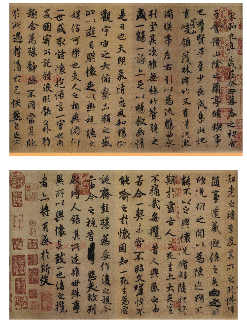 当然,这个结果是不少人无法接受的。因此,后人关于《兰亭序》的下落又有了种种说法:有的说,在温韬盗掘出土的宝物清单上,并没有《兰亭序》,因而可能没有被盗;也有人说,《兰亭序》并未随李世民埋藏到昭陵之中,而是埋在唐高宗李治的陵墓之中;还有的说,《兰亭序》随唐太宗下葬时,被他的姐妹用伪本调包了,真迹依然留存人间……各种说法,不一而足。