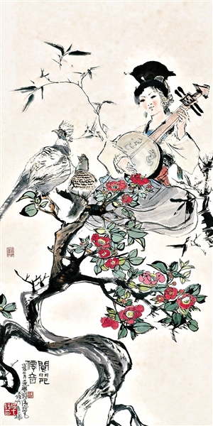 程十发最早主攻山水,之后相继以人物、花鸟闻名。他的人物花鸟画取法于梁楷、贯休、陈洪绶、任伯年诸家,并吸收民间艺术之营养,融会贯通,笔墨洒脱精湛,气韵生动,抒情而浪漫。他既继承传统,又超越古人。作品既有传统的笔墨,也不乏现代精神,非常具有中国特色,这在当代画家中也是独一无二的。