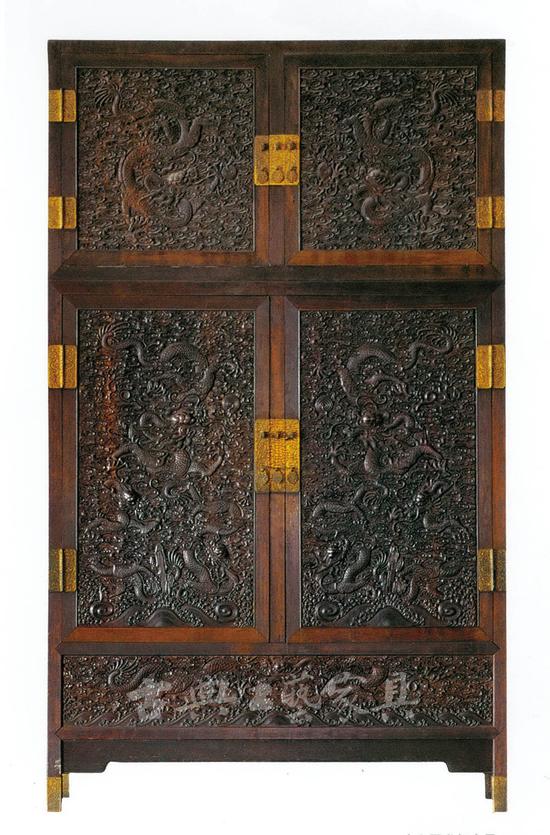图1-2 紫檀雕云龙纹顶竖大柜(故宫博物院藏)图1-2 紫檀雕云龙纹顶竖大柜(故宫博物院藏)