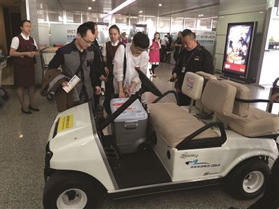 团队抵达成都双流机场后,立即在机场的安排下进入绿色通道,值机、托运行李,完成安检手续,仅用时五六分钟,比一般的旅客节约了近半小时时间。