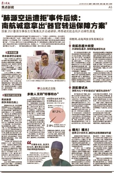 首例绿色通道肺移植转运 四川“救命肺”6小时到无锡