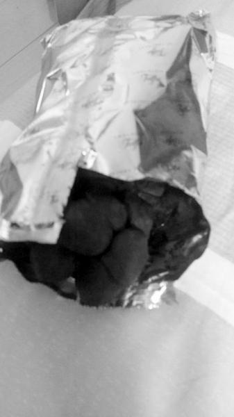然而,打开四个包装,柏女士傻眼了,每个包装里的巧克力都融化变了形,变成了一大坨。四个“大坨”巧克力让柏女士非常愤怒。