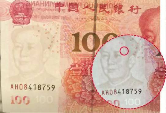 在花果园一家工商银行里,经工作人员检验,确定这张钱不是假币。对于图像上多一颗痣的问题,工作人员说,并不清楚具体原因。不过,可以为杨先生更换等额的人民币。