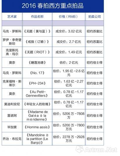 附:2016年中国与西方春拍中,部分重点拍品