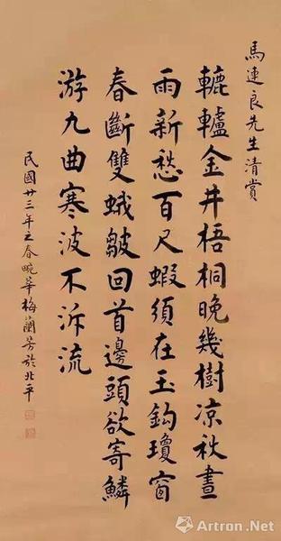 1930年作 楷书诗一首 镜心 水墨纸本
