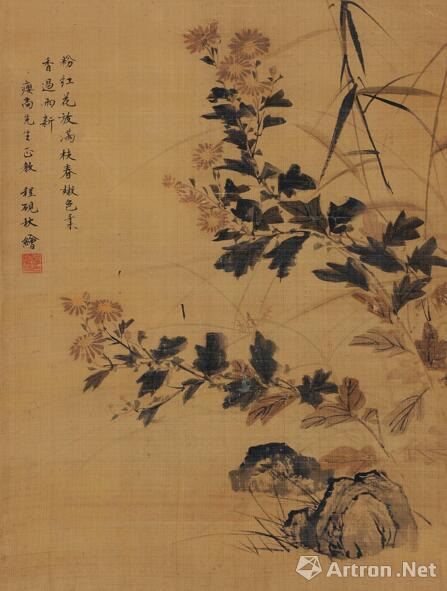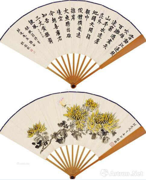 傲霜图 行书 成扇 设色纸本 20×54.5cm