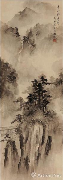 《青山静寺图》 立轴 水墨纸本 93×33cm