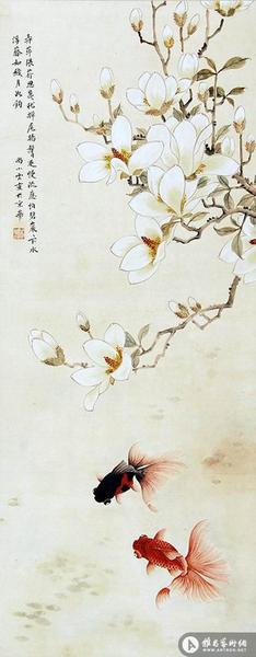 尚小云自幼喜爱书画,在演出之余就开始学习书画艺术,曾得到名家陈师曾的指导。擅长画花卉,所绘的花卉画功力深厚,位列“四大名旦”之首。也许受舞台艺术影响,他的画作别具特色,格调高雅。也长于书法。从作品《游鱼》中,可以看出画家对于花鸟的描绘不仅凸出对花鸟形象的塑造,而且对花鸟意境的营造也十分到位。不仅如此,画作左上方章法稳健,浑厚端庄的书法与花鸟画相得益彰。