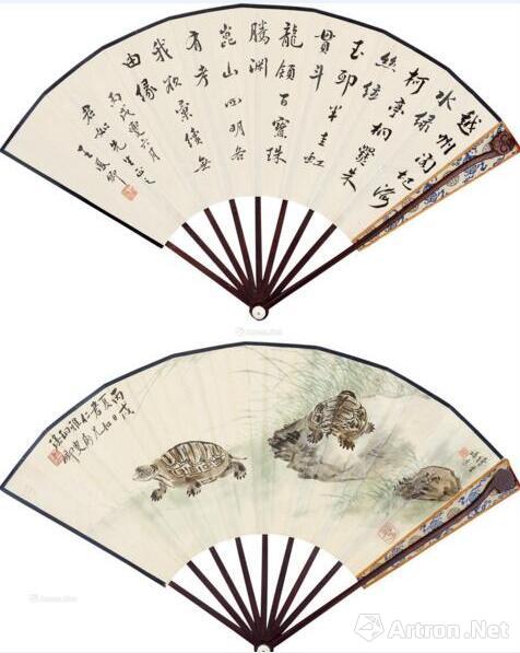 《龟寿图》 行书 成扇 设色纸本 18×51cm? 1946年作