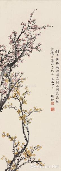 《梅花》 立轴 设色纸本 110×39cm 1925年作
