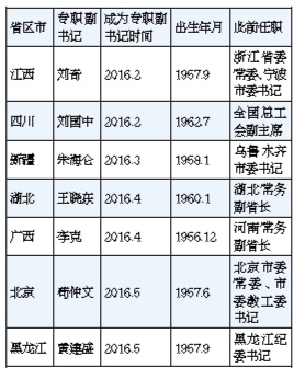 今年以来全国31个省区市已调整7位专职省委副书记